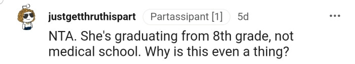"NTA. She's graduating from 8th grade, not medical school."