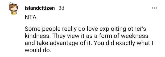 "They view it as a form of weakness and take advantage of it. You did exactly what I would do."