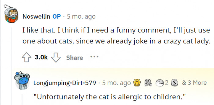 It is important to note here that the Reddit user's intentions with the joke were simply to cut the conversation short. She actually likes kids and adores her nieces and nephews, but she just doesn't want kids of her own.