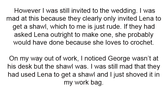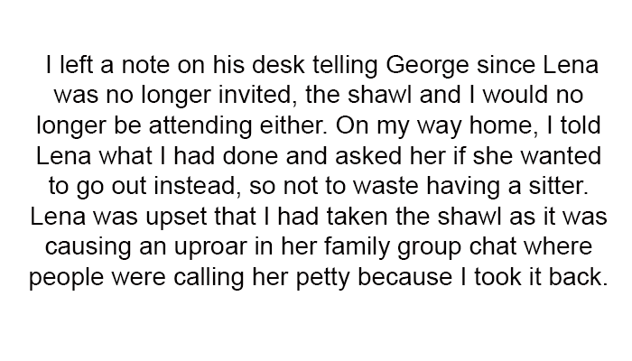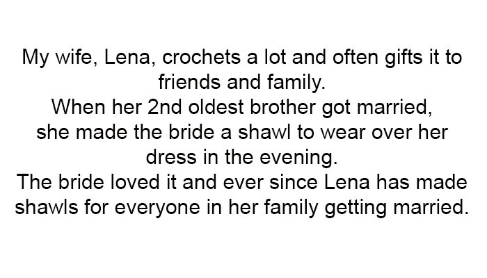 AITA For Taking Back A Shawl My Wife Made For A Bride-To-Be After She Was Uninvited From the Wedding