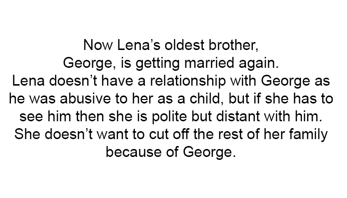 The family's reaction, accusing Lena of pettiness, further complicates the situation, questioning the balance between standing up for a loved one and maintaining family harmony.