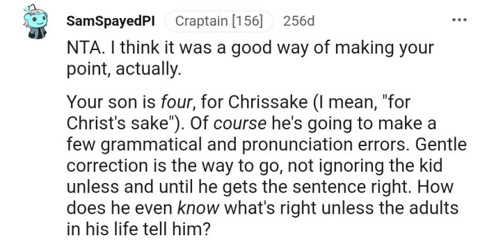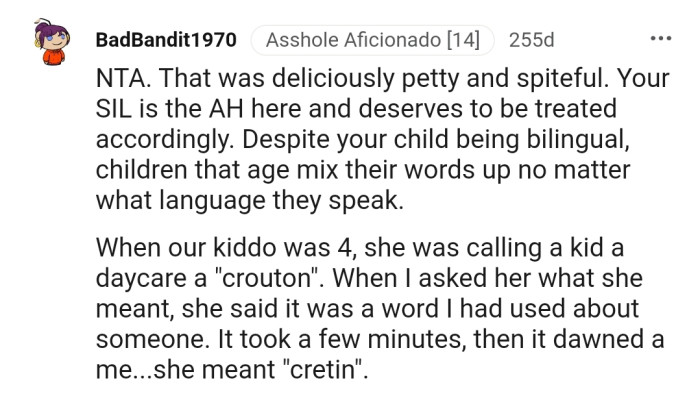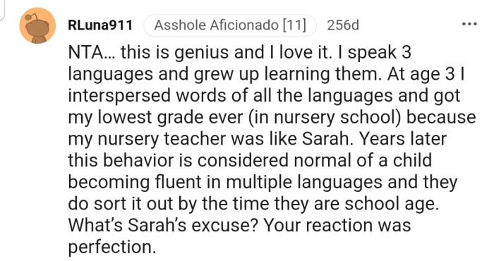 Reddit.comOP's SIL, Sarah, has now decided to ignore OP's son, Louis, whenever he mixes up languages