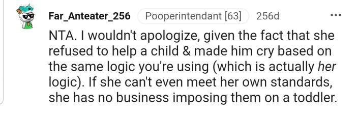 "If she can't even meet her own standards, she has no business imposing them on a toddler."