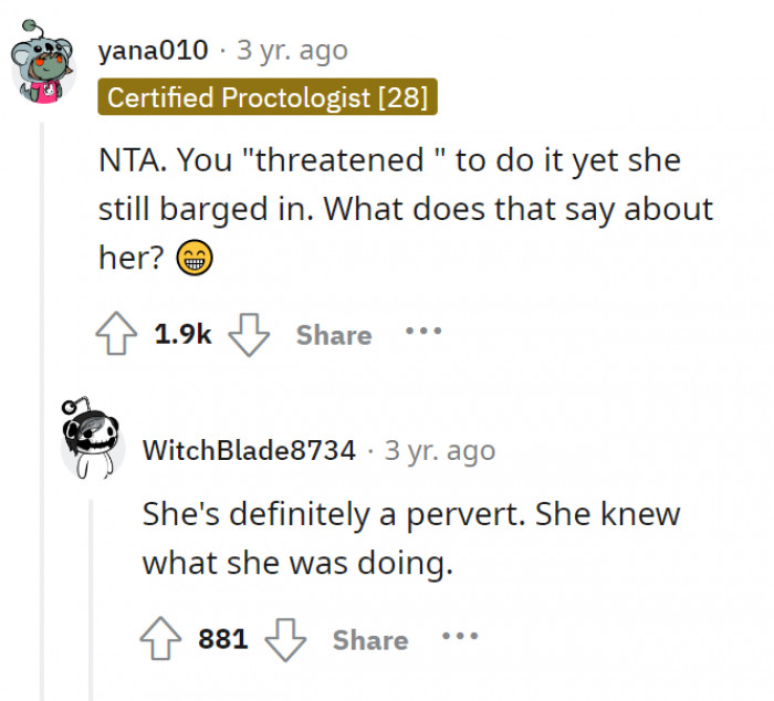 Now, everyone seems to be going against OP for doing it, and he's asking the internet if he was, in fact, an asshole for teaching his roommate's girlfriend a "lesson." Let's see what others have to say...