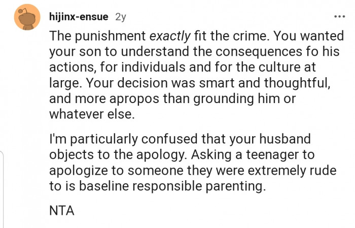 "Asking a teenager to apologize to someone they were extremely rude to is baseline responsible parenting."