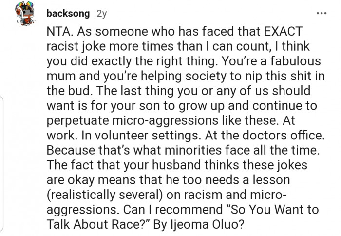 "As someone who has faced that EXACT racist joke more times than I can count, I think you did exactly the right thing."