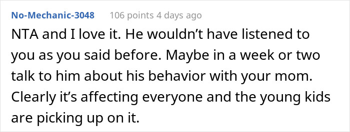 "Maybe in a week or two, talk to him about his behavior with your mom"