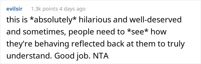 "People need to see how they're behaving reflected back at them to truly understand. Good job. NTA"