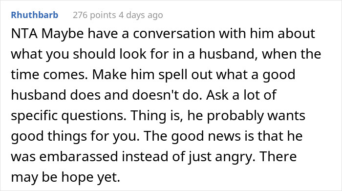 Throwaway61565 / reddit.comGiving her dad a piece of his own medicine