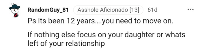 "Ps it's been 12 years…you need to move on."