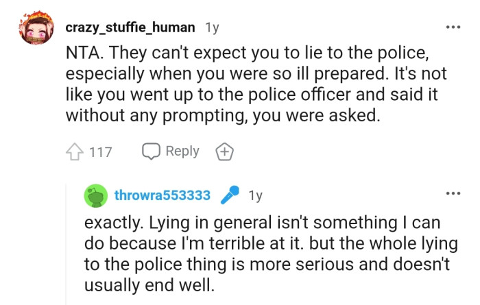 "They can't expect you to lie to the police, especially when you were so ill-prepared."