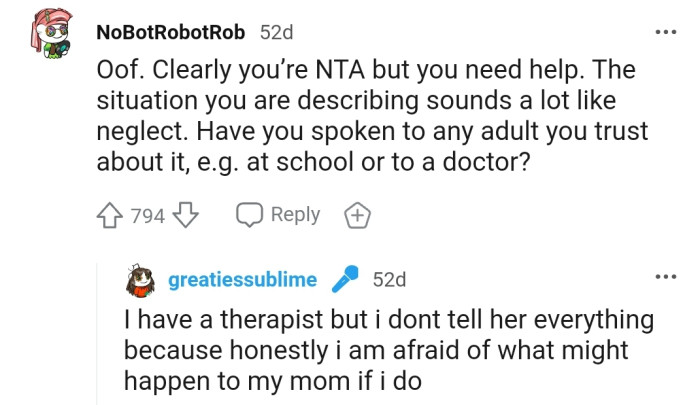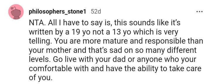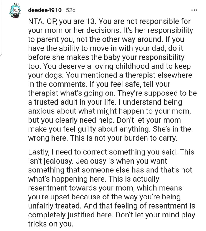 "OP, You Are 13. You Are Not Responsible for Your Mom or Her Decisions."