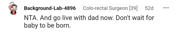 Regardless, the Reddit community can’t help but feel OP needs some help due to her mental health issues. Thus, they advised her to go live with her dad even before the baby’s birth.