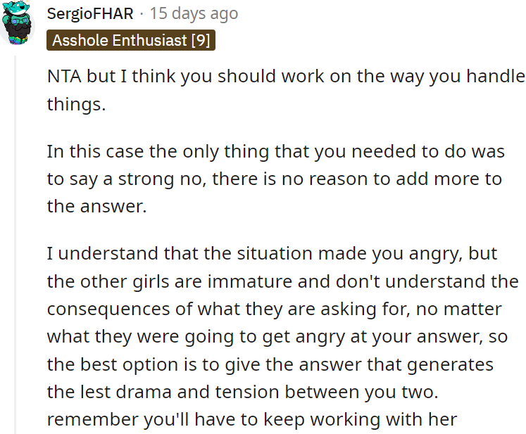 This angered OP even more, especially considering the fact that she barely knew these girls. Who in their right mind asks an almost stranger to break the law for them?