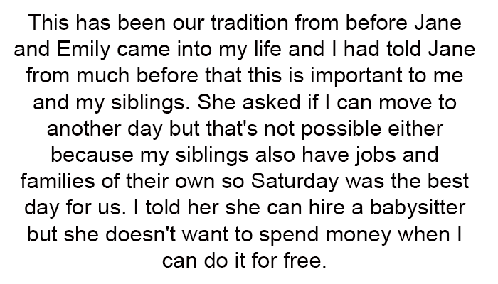 Jane, on the other hand, sees her request as a reasonable adjustment for family needs. Their differing views on what constitutes reasonable sacrifice and priority have led to tension. Let’s explore what others think about this scenario and their perspectives on finding a balance between personal interests and family obligations.