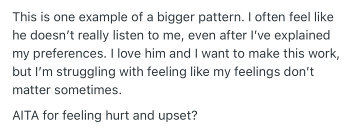 “You're not asking for much; you just want to feel like he actually listens to you.”
