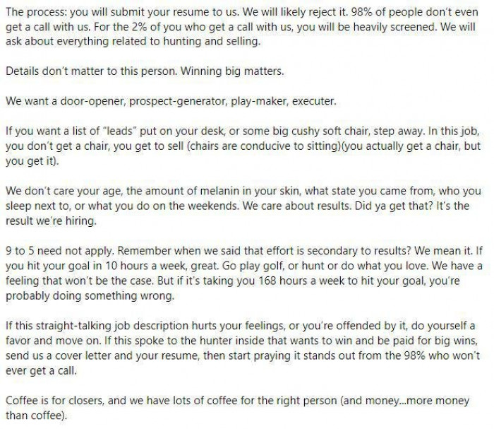 18. "Thought I’d share the most ridiculous job description I’ve ever seen."
