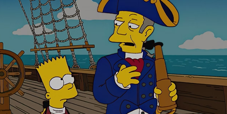 In Season 17's 'The Wettest Stories Ever Told,' the Simpson family embarks on three sea-faring tales. The first recounts the voyage of the Mayflower to the New World, while the second delves into the events leading up to the infamous mutiny aboard the Bounty.