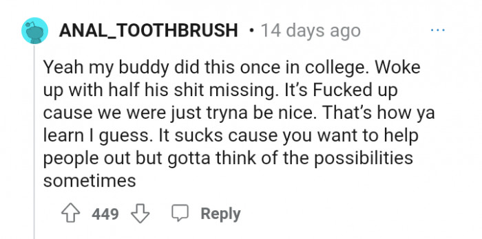 Just ask this Redditor, who took in a homeless man for the night. He didn't think twice about it, but his wife was less than thrilled.