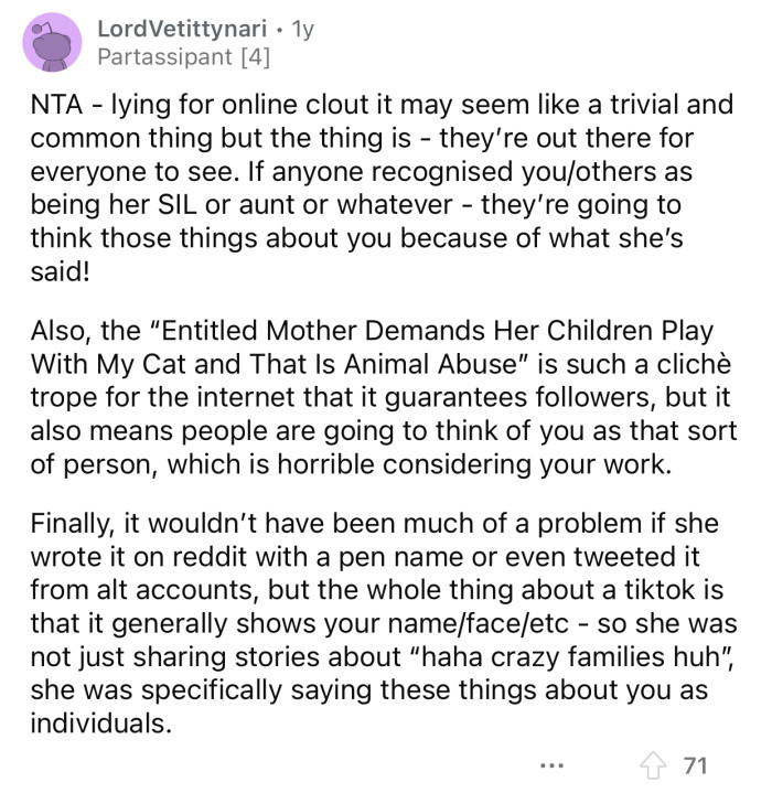 Reddit: r/AmItheA**holeThe niece showed OP some videos the SIL shared with her followers.