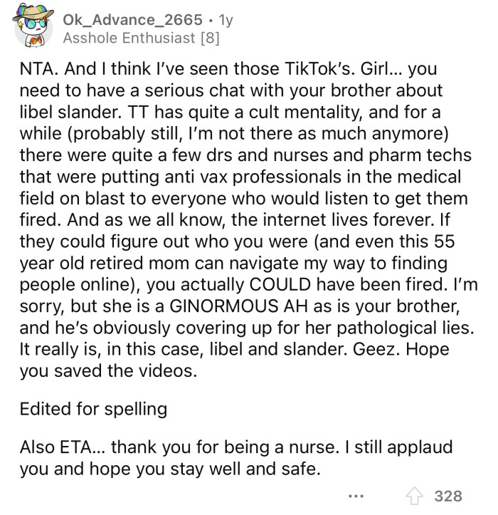 OP was left with no choice but to expose her SIL, who was spreading lies about her and her family. The brother could have prevented this from happening, but he chose to support his girlfriend's lies.