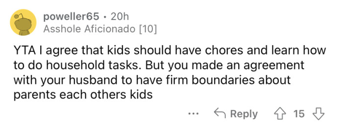 What's your take on this situation? Do you think it's normal for kids to do so many chores at an early age, or is the OP being too hard on her son and stepkids?