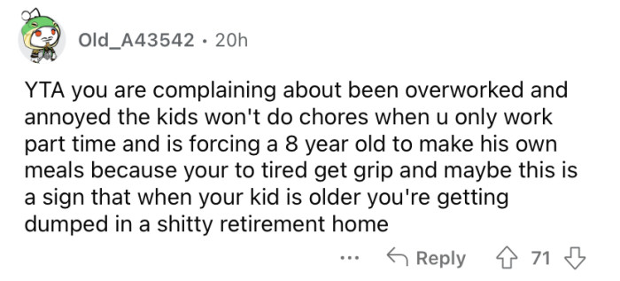 "When your kid is older, you're getting dumped in a sh***y retirement home."