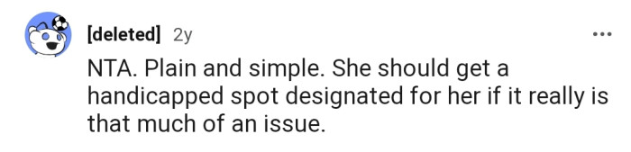 Nonetheless, it becomes apparent that this neighbor finds it exceptionally challenging to walk a considerable distance from a far-away parking spot to her home.