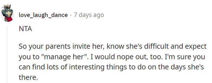 Well, we have just the situation for this. Here we have a Redditor who asked the r/AITA subcommunity if they were an a-hole for avoiding a particular family friend because, well, they're not exactly pleasant to be around.