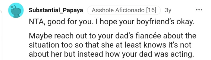 As expected, OP's dad wanted to introduce her to his new fiancée. He set up a coffee meeting, which OP attended with her trans boyfriend of three years.