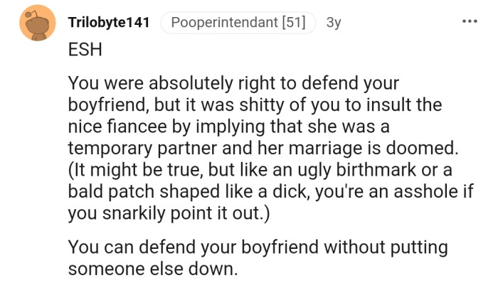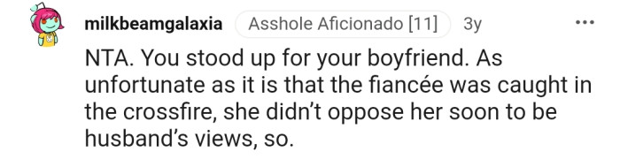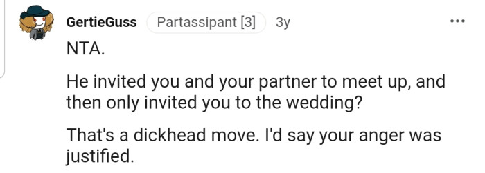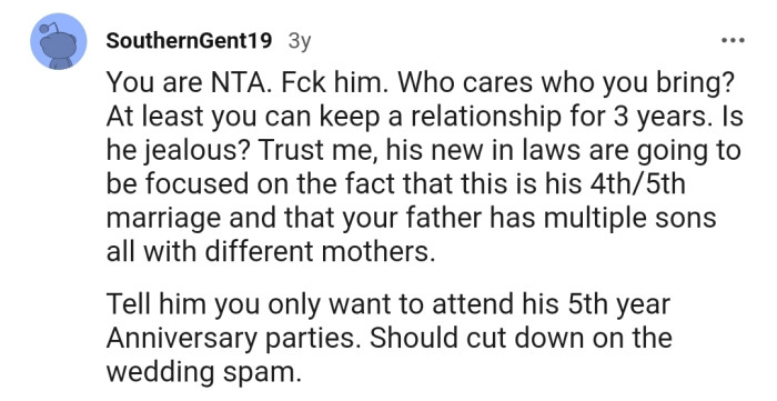 OP wasn’t convinced by this reasoning because her siblings all received plus-ones, so she was sure her boyfriend’s exclusion was due to his being transgender. This left OP with the difficult choice of rejecting her father’s invitation.