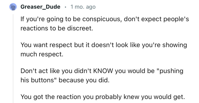 "Don't act like you didn't KNOW you would be ‘pushing his buttons’ because you did."
