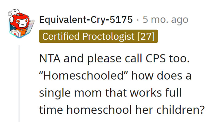 "Homeschooled" by a full-time working single mom? CPS might find that curriculum intriguing.