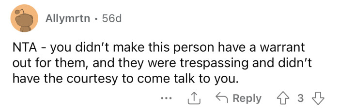 In this context, the Redditor's call to the police can be seen as an attempt to regain a sense of control in a situation that felt threatening.