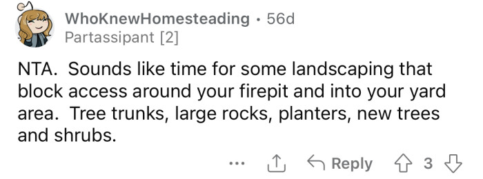 In this case, the Redditor could benefit from discussing their boundaries with neighbors to foster a more respectful community dynamic.