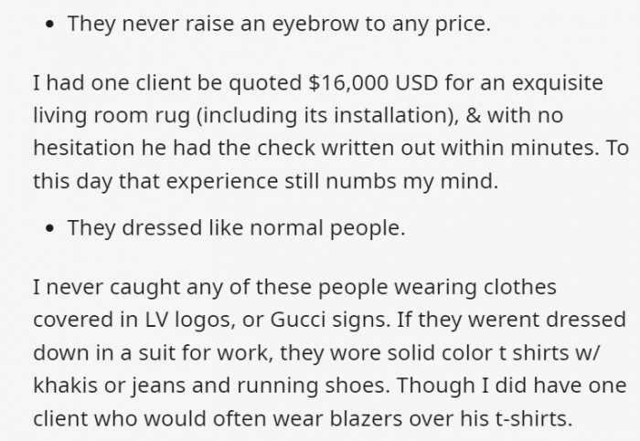 These individuals were the topic of discussion on a Reddit thread that began with the question, "They say 'Money talks, but wealth whispers.' What are the subtle signs of wealth?" People who have observed these signs are highlighting the differences between the rich and the filthy rich.