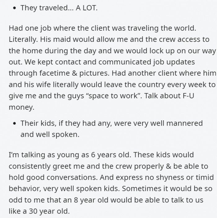 1. From this guy's experience, the filthy rich truly value knowledge and manners