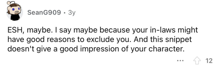 Reddit/twinbrother88He explained that his wife's family has never shown any interest in him, and he feels awkward attending their family gatherings.