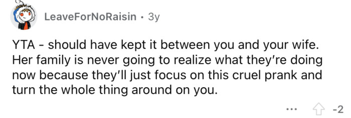 What's your take on this situation? Do you think the OP was out of line for playing the prank on his wife's family, or was it fair that he wanted to prove his point?