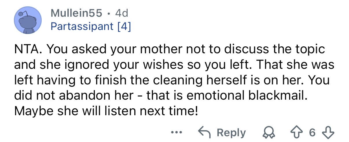 She Helped Her Mom Move All Week, Then Left Mid-Clean Over One Heated Topic