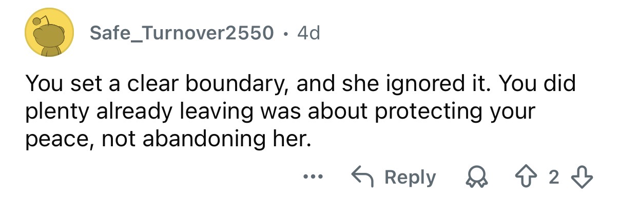 Now, her mom is texting her, saying she has been abandoned and will fail her inspection. The daughter is left wondering—was she wrong to walk away?