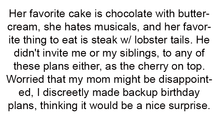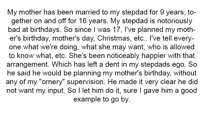AITA For Undermining Stepdad's Birthday Plans To Delight My Mom