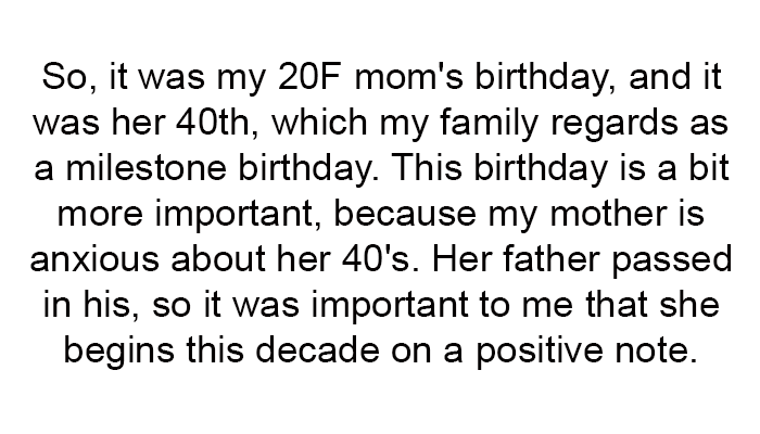 In a heartfelt recounting of a milestone birthday that almost didn't sparkle, a 20-year-old woman steps into the role of a silent guardian for her mother's happiness. The occasion?