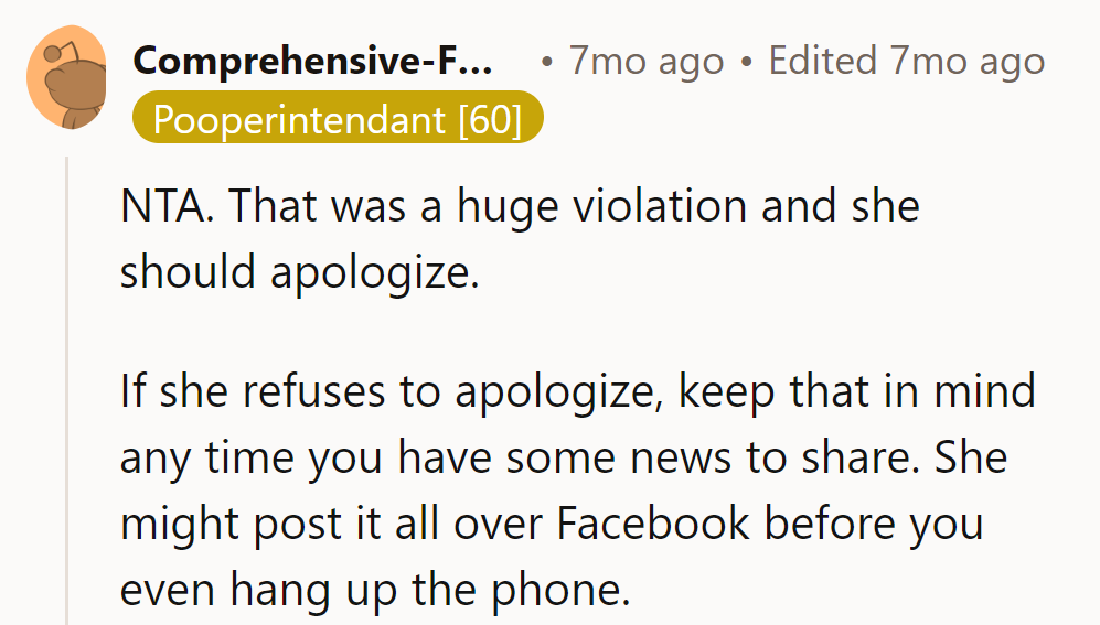 This situation highlights a classic boundary violation that many families face as children become adults. It's essential for parents to recognize that their children have the right to control their narratives, especially regarding significant life events. Respecting this autonomy is crucial for maintaining trust and healthy communication.