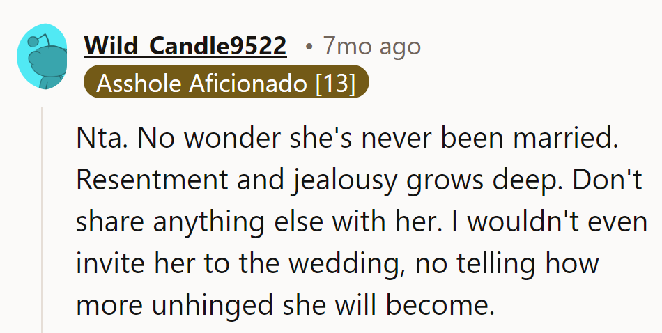 She reported the photos to Facebook and warned her mother to take them down or risk not being invited to the wedding.