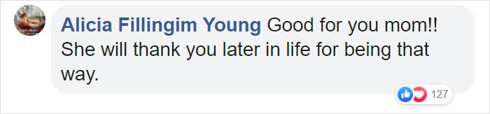Later on, she posted the rationale behind her actions on Facebook, garnering praise from thousands of parents online.