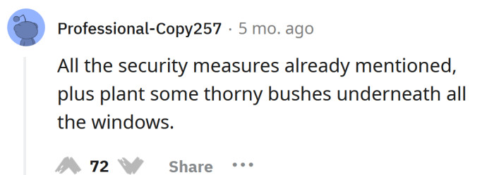 "Plant some thorny bushes underneath all the windows."