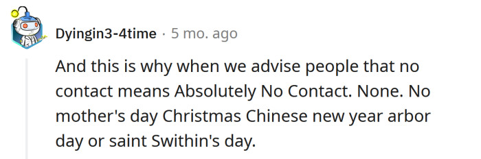 "No contact means absolutely NO contact."