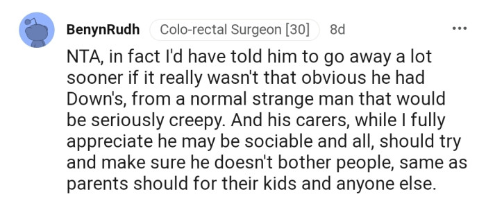 The scene escalated, attracting the attention of other diners and casting a cloud over the joyous holiday. After a short argument, the woman left, but not without OP feeling guilty for being rather harsh to the man with Down syndrome.