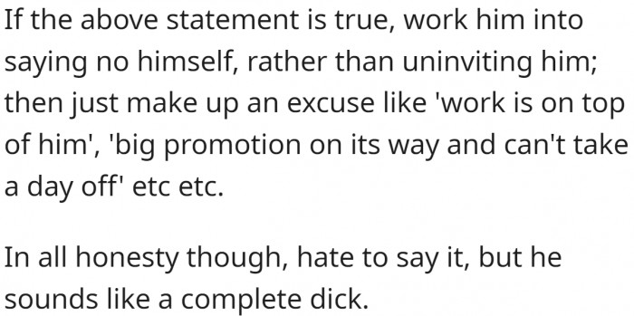 But, it turned out that he doesn’t want to participate even in those fun activities. So OP is thinking about uninviting him. She asks: "AITA for uninviting my husband to my brother's wedding?"